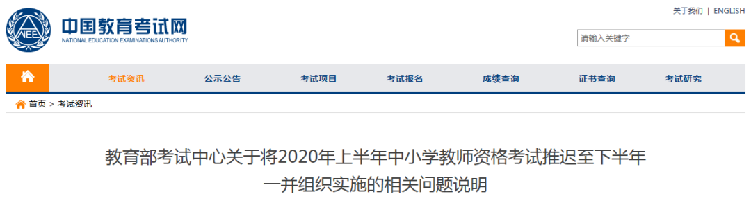 根据教育部《关于将2020年上半年中小学教师资格考试推迟至下半年一并组织实施的公告》精神,2020年上半年中小学教师资格考试将推迟至下半年一并组织实施。上半年已报名缴费考生可申请转至2020年下半年考试或申请退费,前期已通过笔试科目成绩有效期和合格证明有效期延长一年。现将相关问题说明如下: