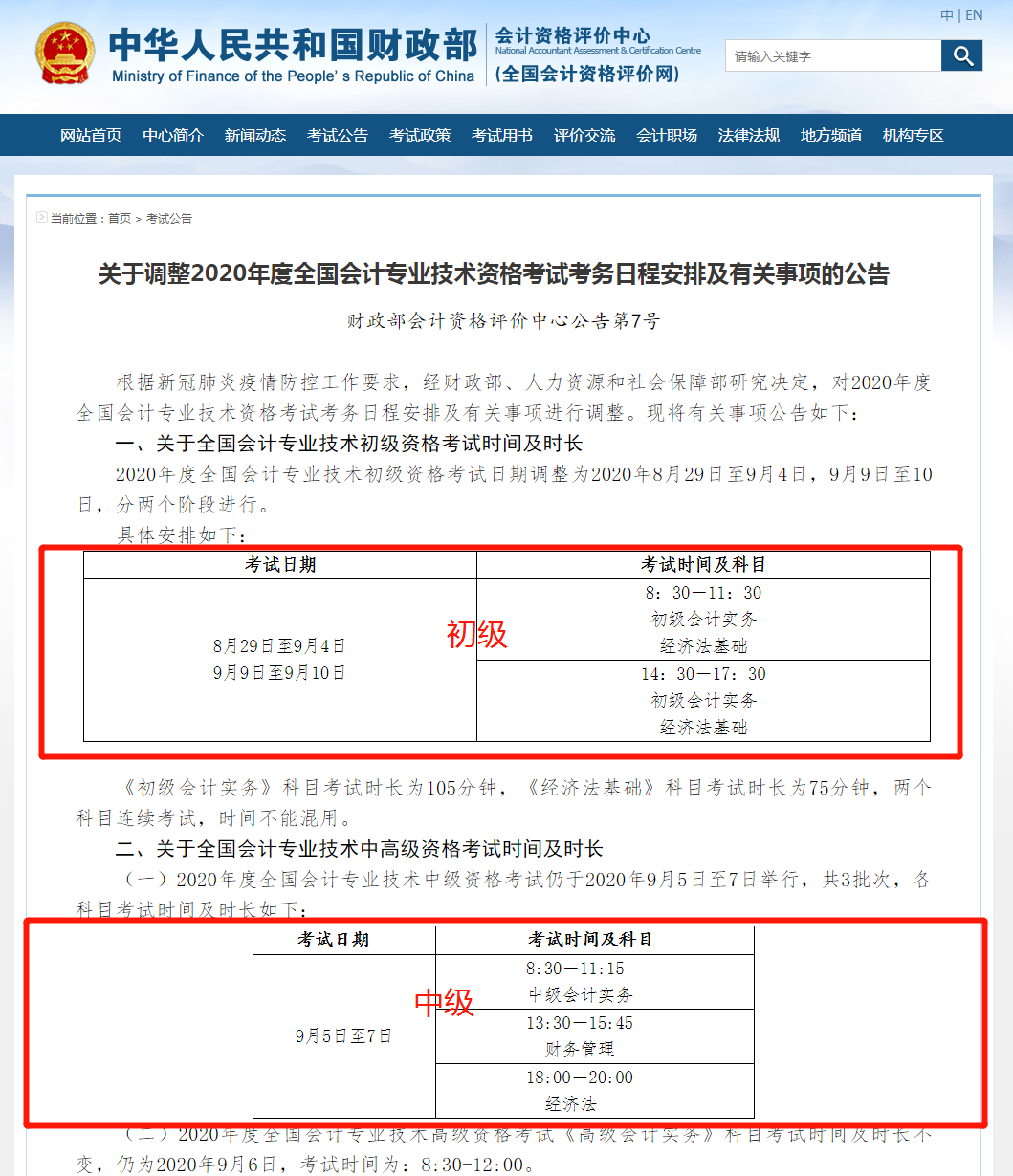 终于确定了,就在刚刚,财政部发布了2020年初级会计考试的时间安排,于2020年8月29日正式开始!