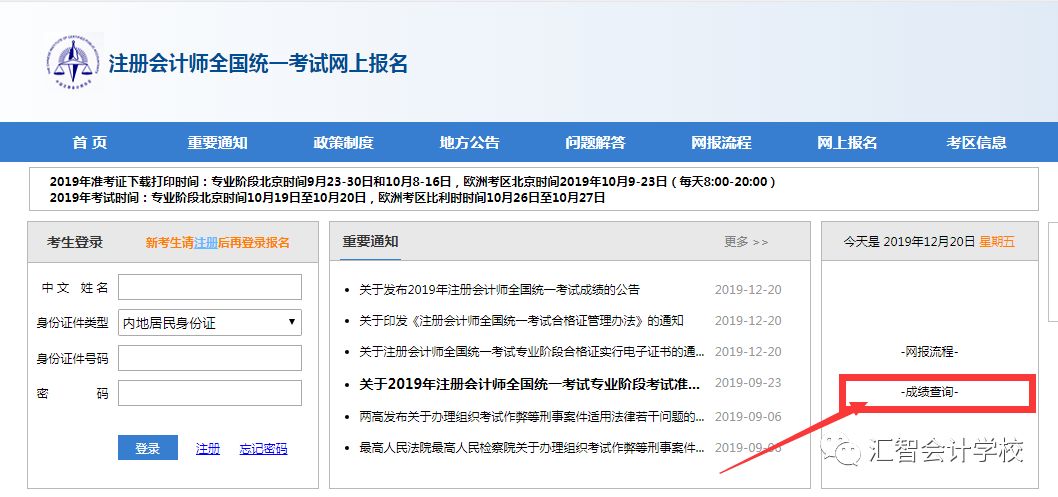 (http://cpaexam.cicpa.org.cn),点击右侧“CPA考试成绩查询”。