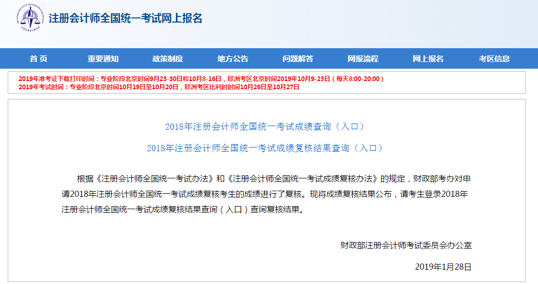 对考试成绩有异议的考生可以在中注协规定期间,通过“注册会计师全国统一考试网上报名”系统,提出成绩复核申请。