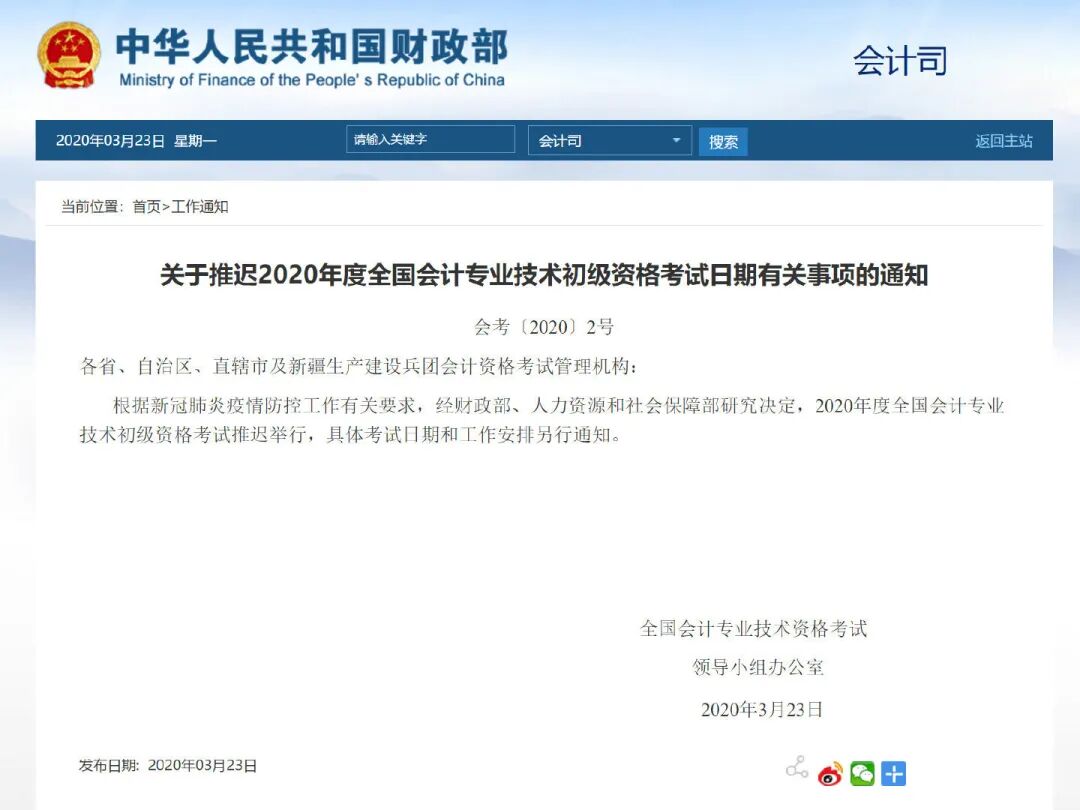 今天,小编明确告诉大家——初级会计考试延期了!